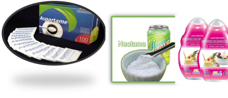 Aspartame, Sucralose, Saccharin, Neotame, Acesulfame K Cyclamate.